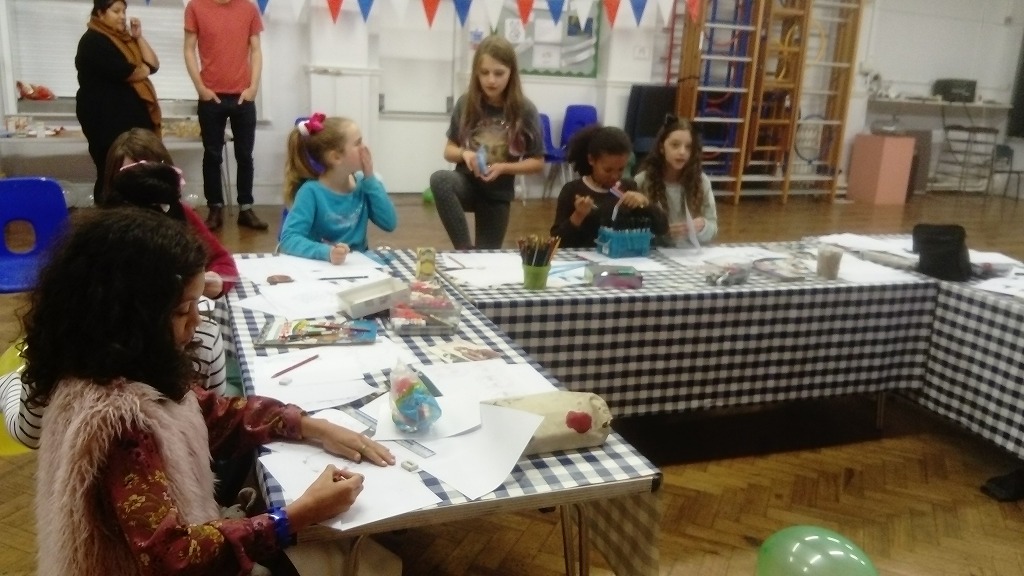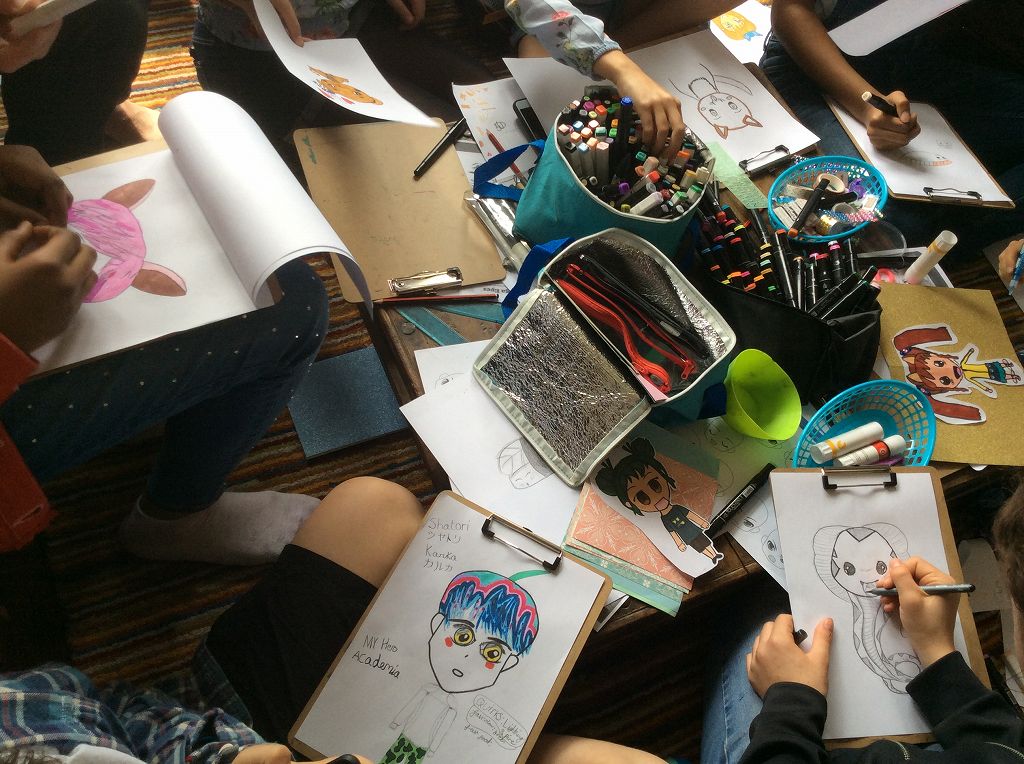 We offer fun Manga drawing workshops for birthday or other parties, usually for up to 10 attendees but with possibilities for larger groups. Our typical party workshop involves some Manga drawing basics plus a Manga card making activity, and we charge £80-120 for a standard booking of two hours, depending on the number of attendees. We can arrange special content by request. Contact us for a quote. (*We might ask you a small commuting fee in addition to the price above, depending on travel time and cost.)